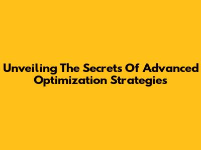 Unveiling The Secrets Of Advanced Optimization Strategies