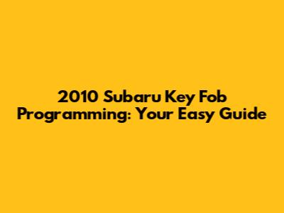 2010 Subaru Key Fob Programming: A Simple Guide