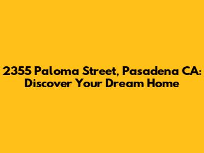 Hey guys! Are you on the hunt for a place that combines the charm of Pasadena with a cozy, neighborhood feel? Let's dive into everything you need to know about 2355 Paloma Street, Pasadena, CA. This isn't just an address; it's a potential gateway to your dream home. Nestled in a vibrant community, this location offers a blend of suburban tranquility and urban convenience. Whether you're a first-time homebuyer, looking to upgrade, or simply curious about the Pasadena real estate market, stick around. We’re going to unpack what makes this spot so special. From the neighborhood vibes to the nearby amenities, we've got you covered. So, grab your favorite beverage, get comfy, and let’s explore why 2355 Paloma Street could be the perfect place for you to call home. Trust me, Pasadena has a unique charm that you'll fall in love with, and this address puts you right in the heart of it all.