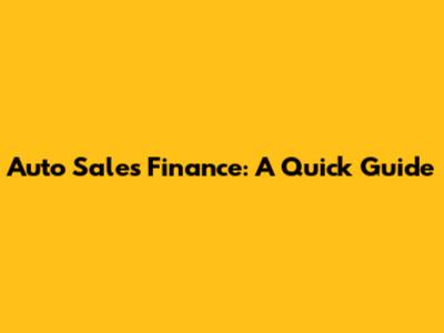 Auto Sales Finance: A Quick Guide