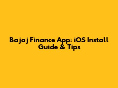 Bajaj Finance App: IOS Install Guide & Tips