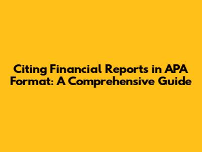 Cite A Financial Report In APA Format: A Quick Guide