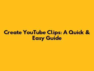 Create YouTube Clips: A Quick & Easy Guide