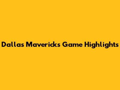 Dallas Mavericks Game Highlights