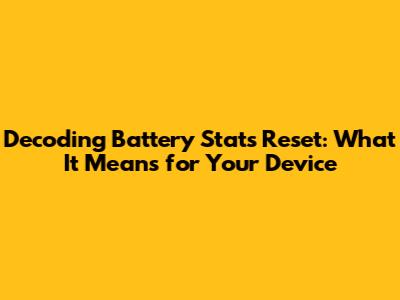 Decoding Battery Stats Reset: What It Means For Your Device
