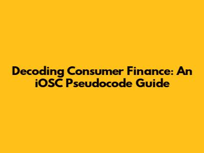 Hey guys! Ever felt lost in the maze of consumer finance? You're not alone. Understanding loans, credit, and investments can be super confusing. But what if we could break it all down into simple steps, like a computer program? That's where iOSC pseudocode comes in! In this article, we'll use pseudocode – a way to write code in plain English – to demystify consumer finance. Let's dive in and make finance less scary and more manageable!