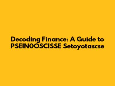 Decoding Finance: A Guide To PSEIN0OSCISSE Setoyotascse