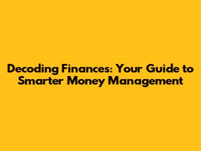 Decoding Finances: Your Guide To Smarter Money Management