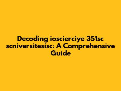 Decoding Ioscierciye 351sc Scniversitesisc: A Comprehensive Guide