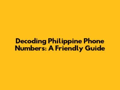 Decoding Philippine Phone Numbers: A Friendly Guide
