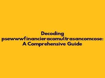 Decoding Psewwwfinancieracomultrasancomcose: A Comprehensive Guide