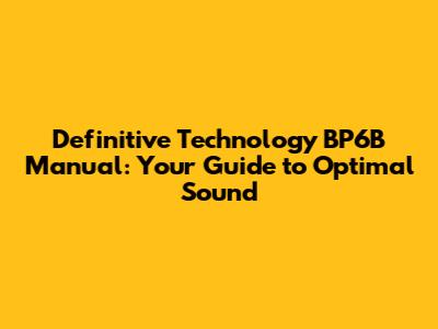 Why You Need the Definitive Technology BP6B Manual