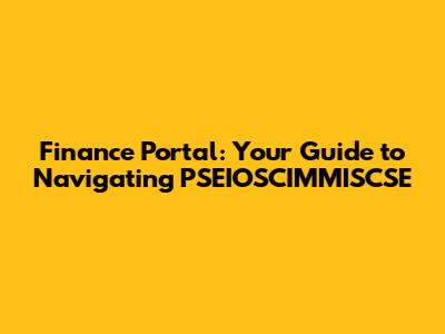Hey everyone! Today, we're diving into the world of PSEIOSCIMMISCSE, specifically its finance portal. Now, I know the name might seem like a mouthful, but trust me, understanding this portal can seriously up your game when it comes to managing finances. This guide is your friendly companion, breaking down everything you need to know in a clear, easy-to-digest way. We'll cover what PSEIOSCIMMISCSE is, what the finance portal does, how to use it, and some pro tips to make the most of it. So, grab your coffee, get comfy, and let's jump right in!