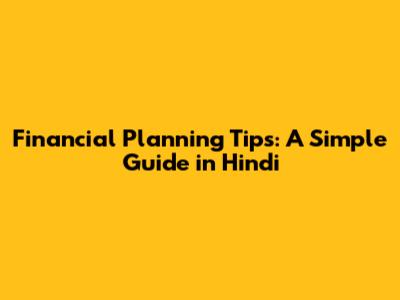 Financial Planning Tips: A Simple Guide In Hindi