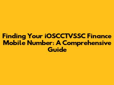 Finding Your IOSCCTVSSC Finance Mobile Number: A Comprehensive Guide