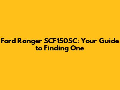 Ford Ranger SCF150SC: Your Guide To Finding One