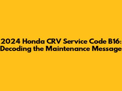 Alright, Honda CRV enthusiasts! Ever seen that B16 service code pop up on your dashboard and wondered, “What in the world does that mean?” You’re not alone! Understanding these maintenance codes is crucial for keeping your ride in tip-top shape and avoiding potential headaches down the road. So, let’s dive into the specifics of the B16 service code on your 2024 Honda CRV.