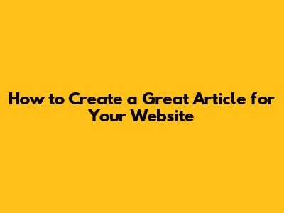 How To Create A Great Article For Your Website