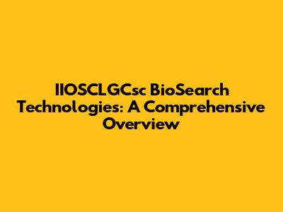 IIOSCLGCsc BioSearch Technologies: A Comprehensive Overview