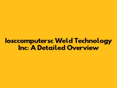 Iosccomputersc Weld Technology Inc: A Detailed Overview