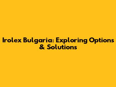 Irolex Bulgaria: Exploring Options & Solutions