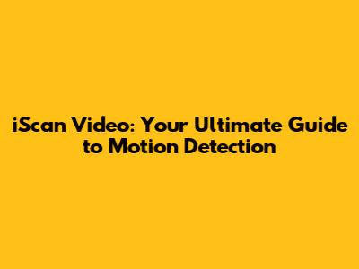 IScan Video: Your Ultimate Guide To Motion Detection