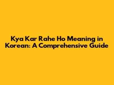 Hey guys! Ever wondered how to say "What are you doing?" in Korean? Well, you've come to the right place! In this article, we're diving deep into the translation and cultural context of the phrase "kya kar rahe ho" when you want to express it in Korean. Whether you're a K-drama enthusiast, a language learner, or just curious, we've got you covered. Letโs get started and unravel the linguistic and cultural nuances.
