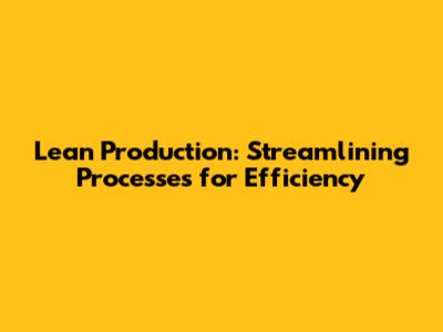 Lean Production: Streamlining Processes For Efficiency