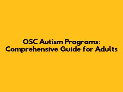 OSC Autism Programs: Comprehensive Guide For Adults