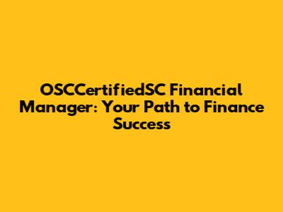 OSCCertifiedSC Financial Manager: Your Path To Finance Success
