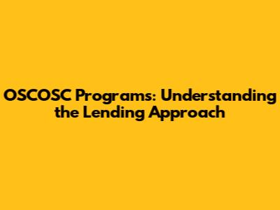 OSCOSC Programs: Understanding The Lending Approach