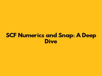 SCF Numerics And Snap: A Deep Dive