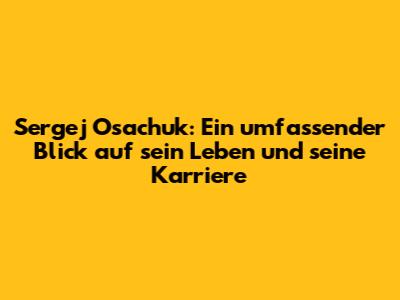 Sergej Osachuk: Leben, Karriere Und Mehr
