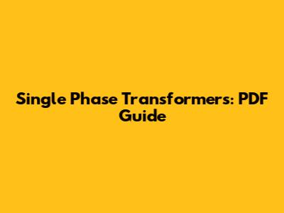 Single Phase Transformers: PDF Guide
