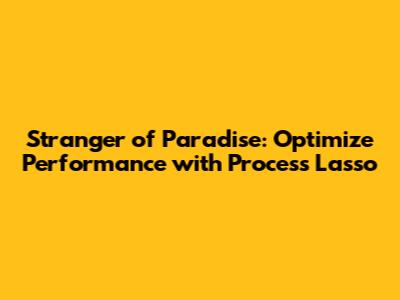 Stranger Of Paradise: Optimize Performance With Process Lasso