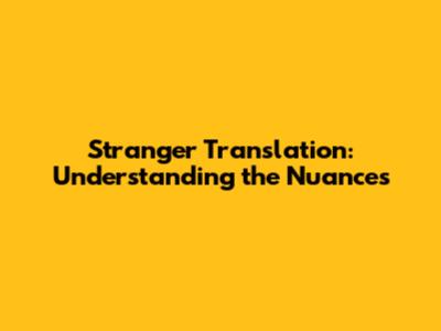 Stranger Translation: Understanding The Nuances