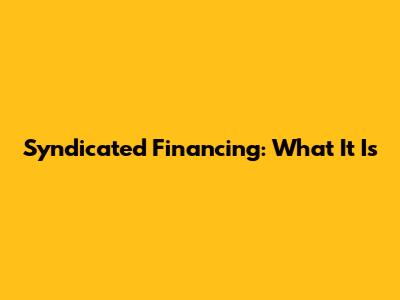 Syndicated Financing: What It Is