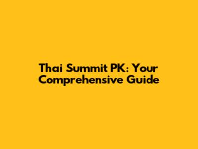 Thai Summit PK: Your Comprehensive Guide