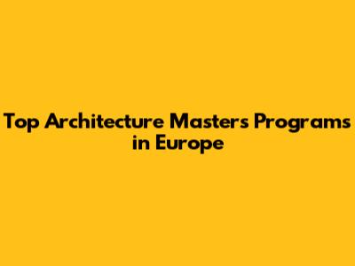 Top Architecture Masters Programs In Europe