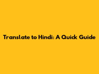 Translate To Hindi: A Quick Guide