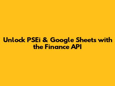Hey guys, are you ready to dive into the exciting world where the Philippine Stock Exchange Index (PSEi) meets the power of Google Sheets? We're talking about the PSEi Google Sheets Finance API – a game-changer for anyone wanting to track, analyze, and visualize their financial data. Whether you're a seasoned investor, a budding finance enthusiast, or just someone who loves to keep tabs on the market, this is your ultimate guide. We'll break down everything you need to know, from the basics to some cool advanced tricks, ensuring you can harness the full potential of this powerful combo. Let's get started!