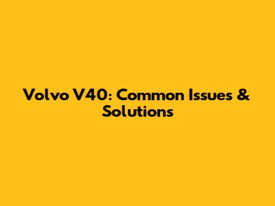 Volvo V40: Common Issues & Solutions